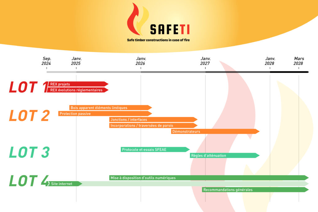Le programme proposé a pour objectif de contribuer à lever les verrous techniques et scientifiques les plus importants liés à l’utilisation du bois en situation d’incendie. Il repose également sur des expériences professionnelles directement issues des acteurs du « terrain ».